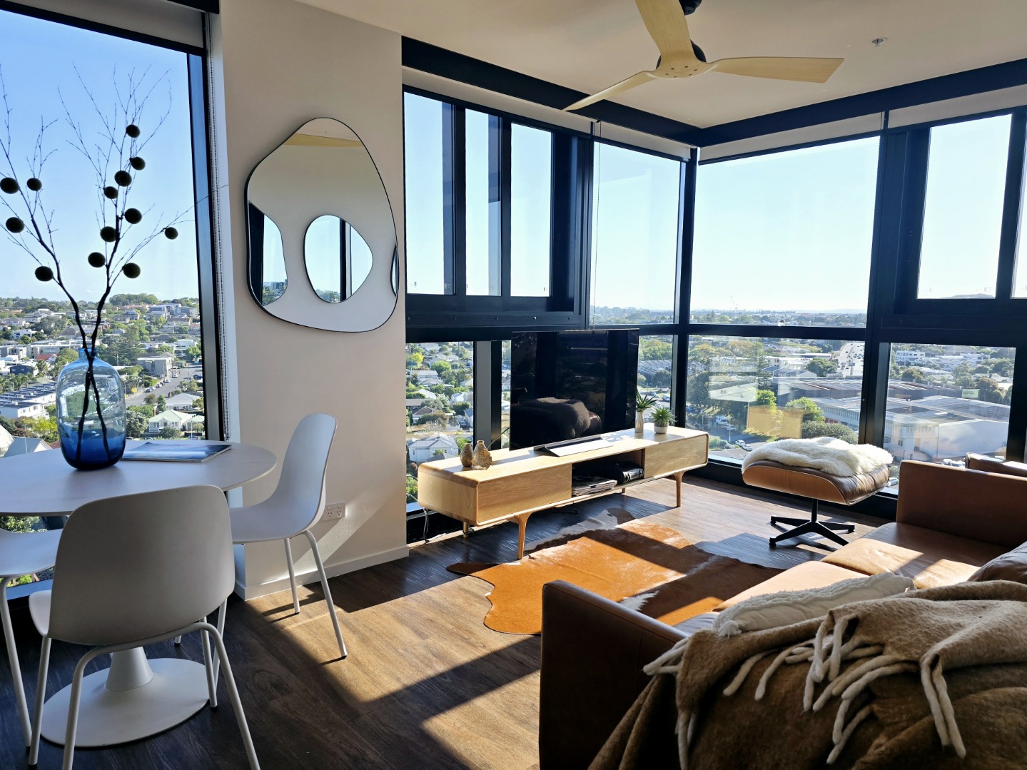 Grab this funky penthouse apartment with views every which way you look, Bathed in sunshine from the bedroom to the living area