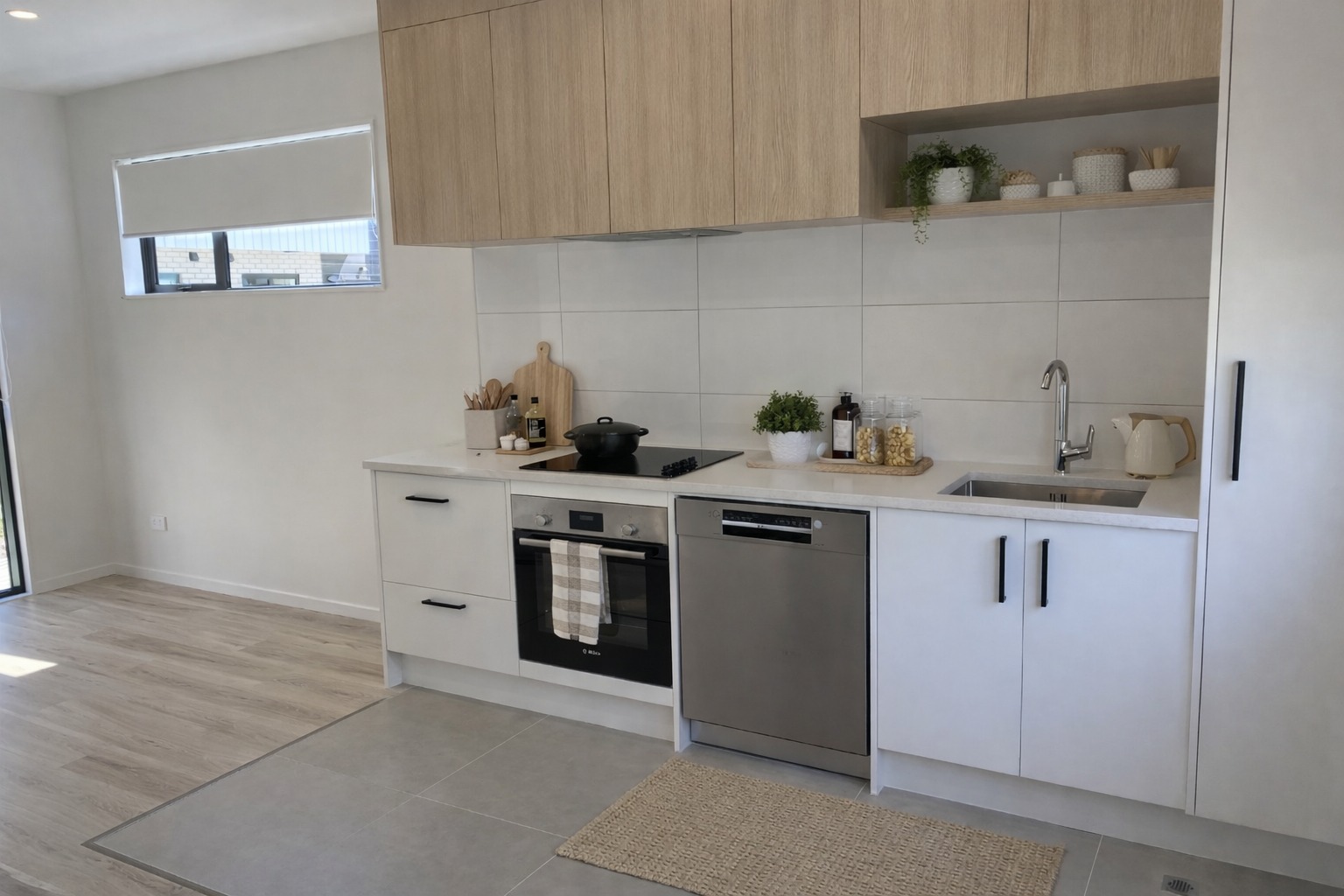 Downstairs, the open-plan kitchen and living area creates a welcoming space to unwind or enjoy your morning coffee, with a layout designed for both comfort and practicality.