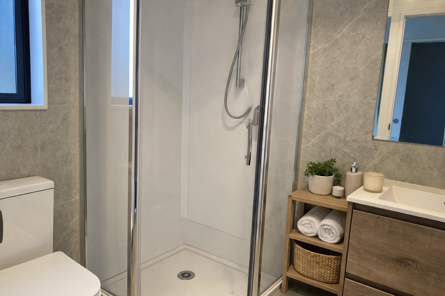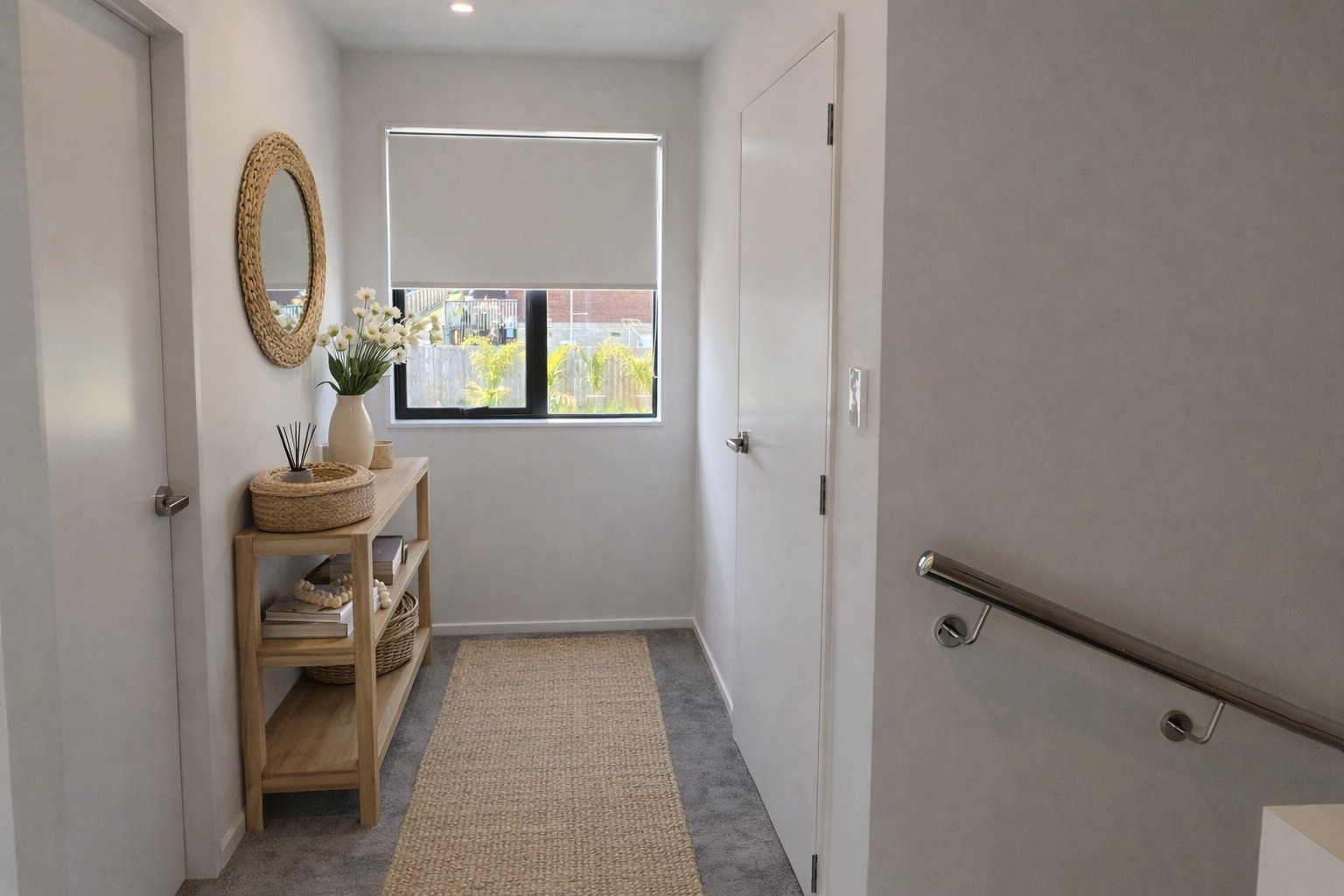 Upstairs features a spacious bedroom complete with two built-in wardrobes, a sleek and functional bathroom, plus a handy study nook in the hallway—perfect for working from home or extra storage.