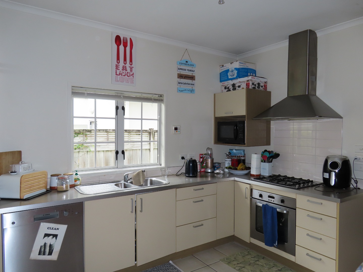 - Large open plan kitchen living and dining.