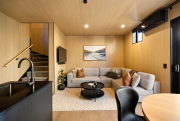 Living Space: Open-plan kitchen, lounge, and dining area, featuring a heatpump for year-round comfort.