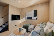 Living Space: Open-plan kitchen, lounge, and dining area, featuring a heatpump for year-round comfort.